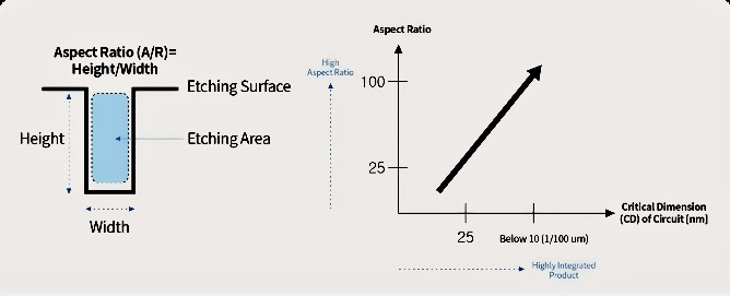 De beeldverhouding is, zoals de naam al doet vermoeden, de verhouding tussen de etsdiepte en de openingsbreedte. Structuren met een aspectverhouding zijn een kernvereiste voor 3D-apparaten in MEMS en moeten worden geoptimaliseerd door middel van gasverhouding en vermogensregeling om verslechtering van de bodemsnelheid te voorkomen.