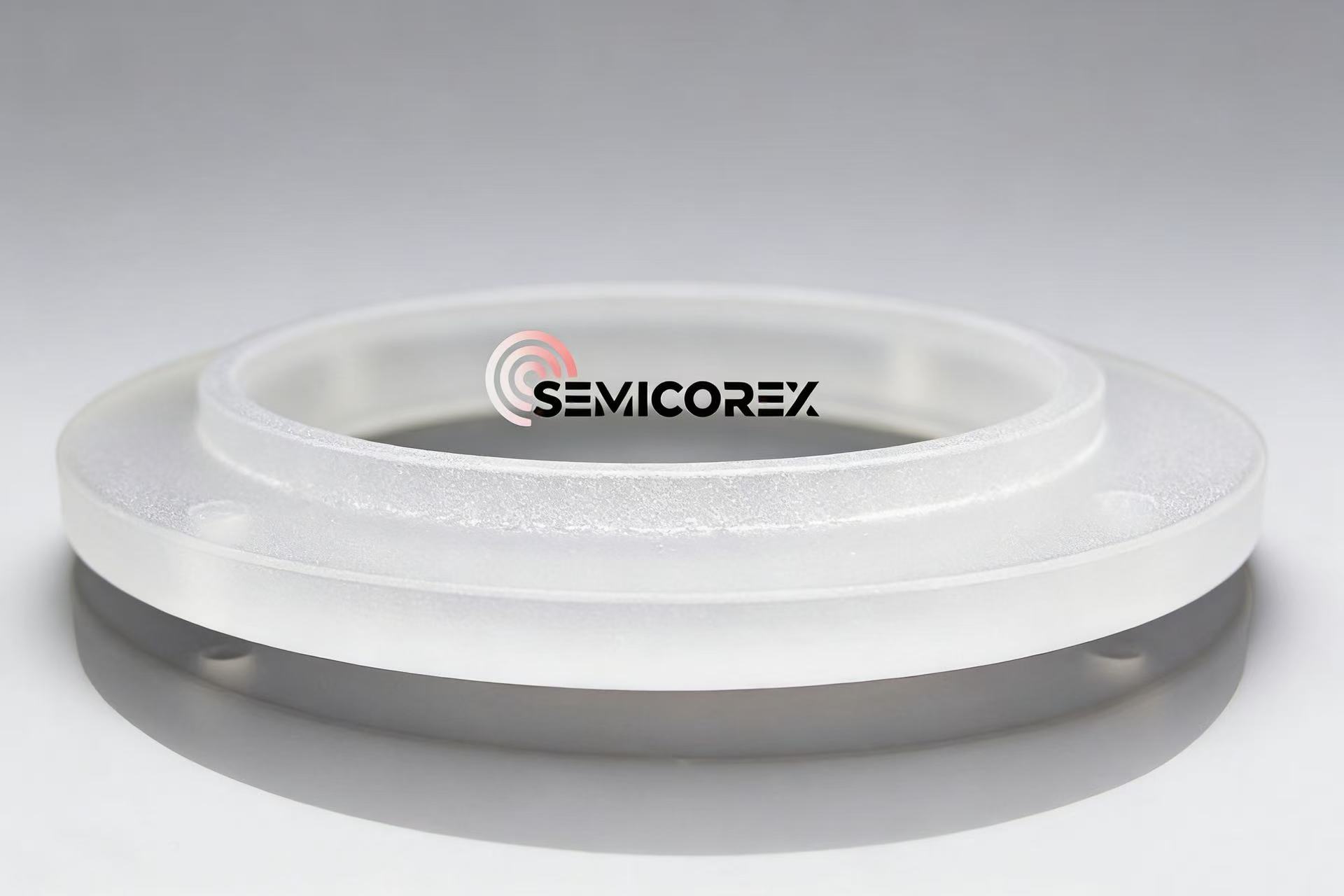 Kwarts focusringenzijn speciaal ontworpen voor droge etsprocessen. Ze worden doorgaans rond wafers geïnstalleerd om plasma op te sluiten en te homogeniseren, waardoor uniformiteit van de etssnelheid en patroonvorming op de wafer effectief wordt gegarandeerd. Deze werkomgeving vereist dat kwartsfocusringen een sterke weerstand hebben tegen plasmacorrosie, een extreem hoge maatnauwkeurigheid en een gladde oppervlakteafwerking om abnormale ontladingen of het genereren van deeltjes te voorkomen.