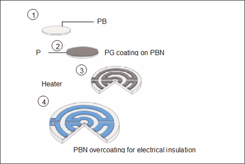 De pyrolytische boornitride-pyrolytische grafiet (PBN-PG) composietverwarming is een verwarming die PBN met hoge insulatie gebruikt als het substraat en gebruik maakt van lagedrukkende thermische ontleding chemische dampafzetting (CVD) bij lage druk (onder 10Torr) en de middelbare temperatuur om de geleiders te coaten. De belangrijkste componenten van deze composietverwarming zijn pyrolytisch boornitride (PBN) en pyrolytisch grafiet (PG). Vanwege de uitstekende corrosieweerstand en hoge temperatuurweerstand wordt het voornamelijk gebruikt voor halfgeleidersubstraatverwarming (gebruikt in MBE, MOCVD, sputtercoating, enz.); supergeleidersubstraatverwarming; monsterverwarming tijdens monsteranalyse; elektronenmicroscoopmonsterverwarming; metaalverwarming; Metaalverdampingsbron, etc.