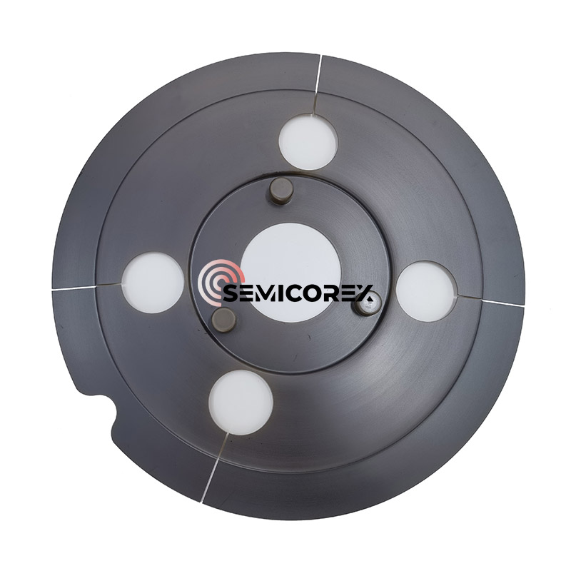 De schijfstructuur van het onderdeel, compleet met nauwkeurig geboorde gaten, zorgt voor gecontroleerde stromen van gassen en vloeistoffen door de proceskamers. Afhankelijk van de toepassing kunnen de gaten worden geconfigureerd om de stroom bijproducten of drainage te beheren voor een schone en stabiele omgeving tijdens het waferproces. Bij een epitaxietoepassing kan de SiC Fin bijvoorbeeld helpen bij het richten van procesgassen of condensaatstromen, waardoor de filmuniformiteit wordt verbeterd en deeltjesverontreiniging wordt geminimaliseerd. In etsgereedschappen is het effectief voor de veilige en efficiënte verwijdering van reactieve soorten en vloeibare bijproducten die kwetsbare kamercomponenten beschermen tegen chemische degradatie.