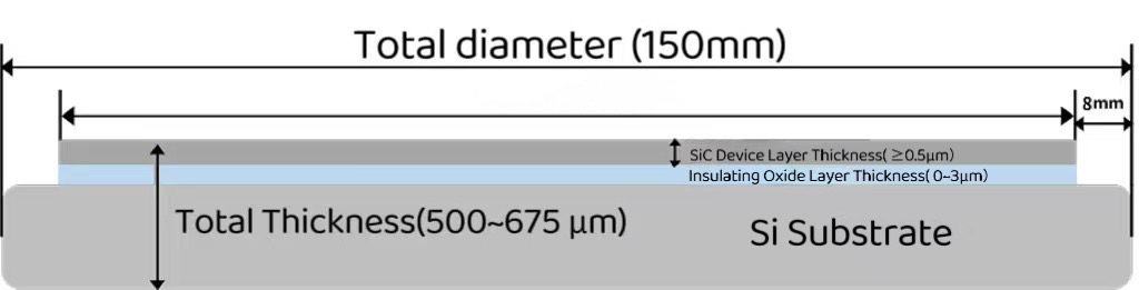 Gelegen tussen het siliciumsubstraat en de SiC-apparaatlaag, is de isolerende oxidelaag de middelste laag van de SICOI-wafel. Door de stroompaden tussen de bovenste en onderste lagen te isoleren, verlaagt de isolerende oxidelaag effectief het risico op kortsluiting en garandeert de stabiele elektrische prestaties van halfgeleiderapparaten. Vanwege zijn lage absorptiekarakteristiek kan het de optische verstrooiing aanzienlijk verminderen en de optische signaaloverdrachtefficiëntie van halfgeleiderapparaten verbeteren.